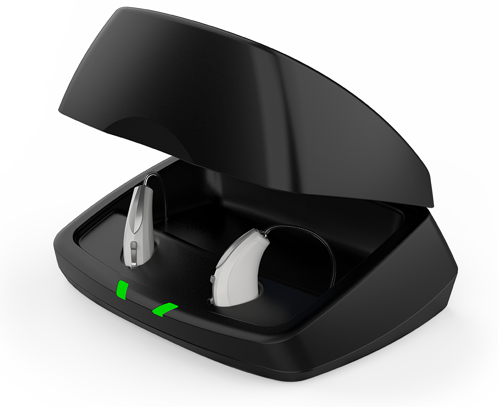 RIC R 보청기에 포함된 기성형 충전기는 사용하기 쉽고 보청기를 최대 3회 완전 충전할 수 있습니다.