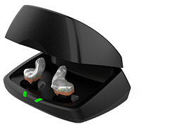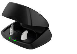 Starkey의 기성형 및 귓속형 충전기는 충전기이며 케이스의 역할도 하며 전방 LED 표시등을 구비하여 보청기 충전 상태를 표시합니다.